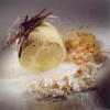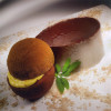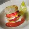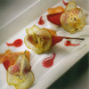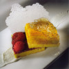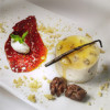 Croccante con lamponi al coulis di rabarbaro
